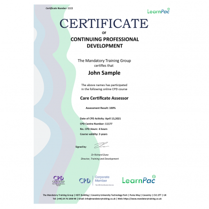 Care Certificate Assessor – Online Training Course – CPDUK Accredited.