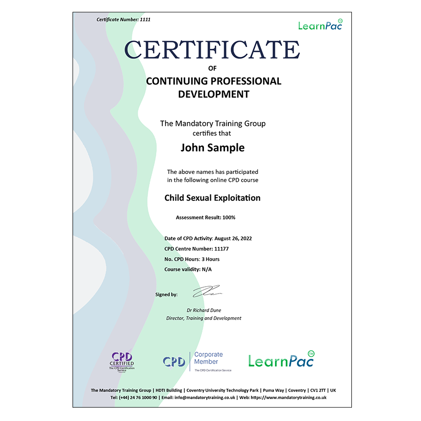 Child Sexual Exploitation | Level 1 | Online Training Course | CPDUK Accredited.