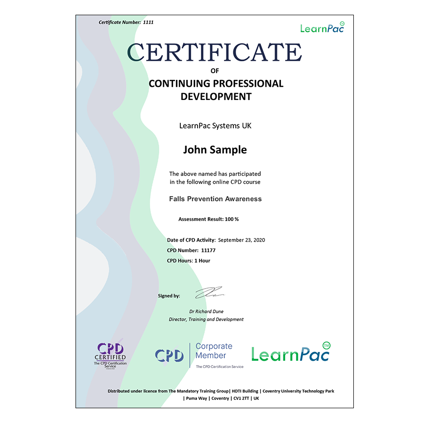 Falls Prevention Awareness – Level 1 – E-learning Course – CPDUK Certified