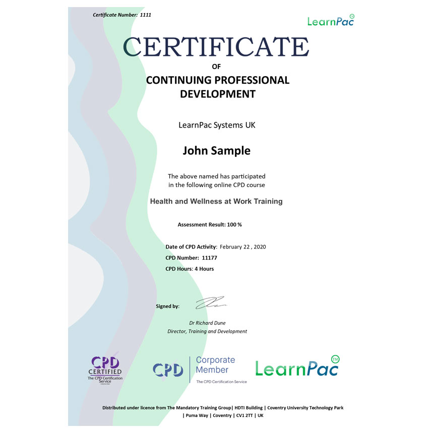 Health and Wellness at Work Training – Online Course – CPDUK Accredited