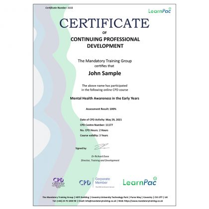 Welcome to our Mental Health Awareness in the Early Years – Level 2 online course. All our online training courses, programmes and qualifications are accredited by the CPD Certification Service (CPDUK).