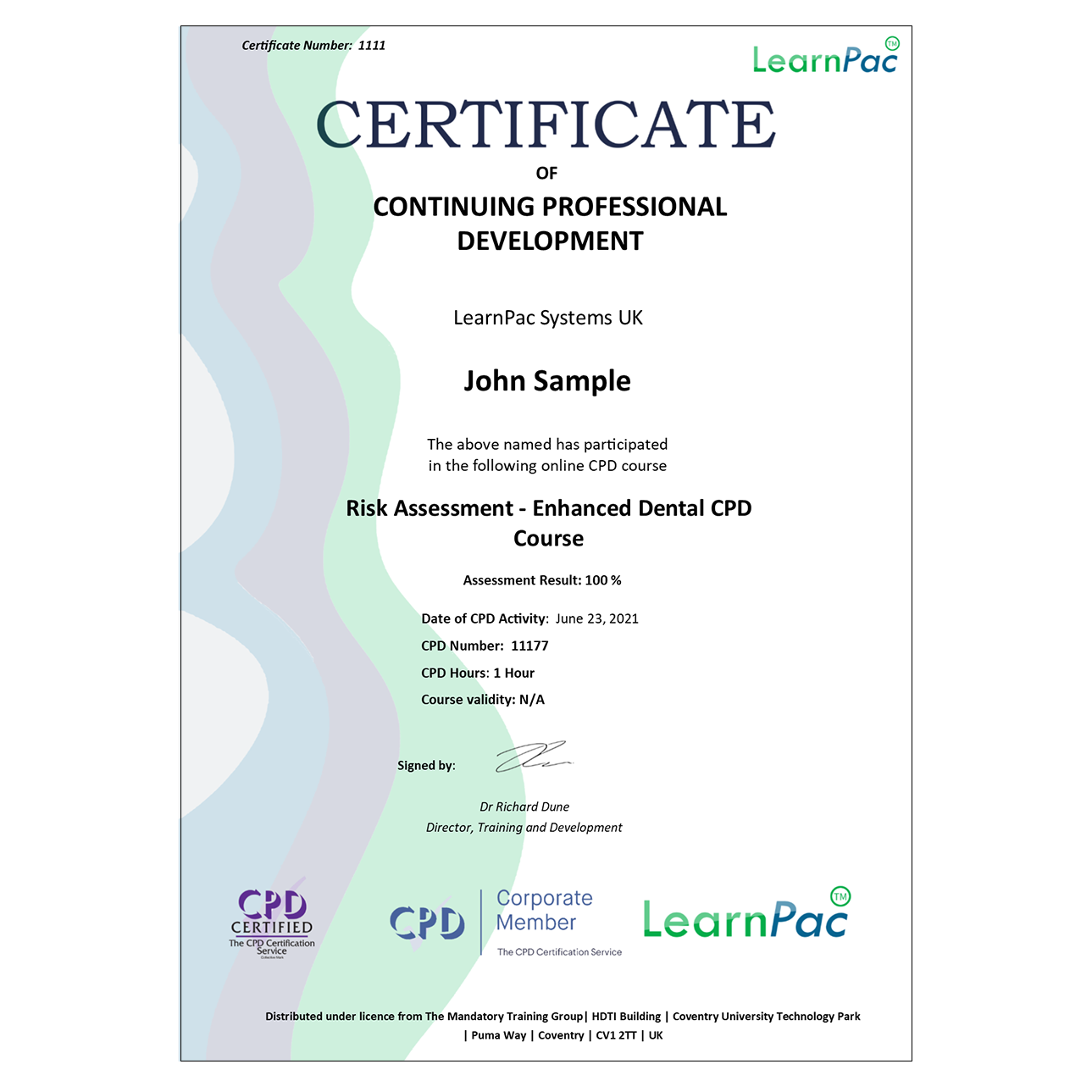 Assessment pass mark – 80% needed to pass and gain a CPD certificate